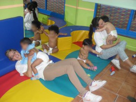 Concretamente en el Aula Cuna de Mensajeros de la Paz en el barrio de La Latina. La Directora de dicha aula, Lucía Antolín, es Delegada de nuestra Asociación en Madrid y su labor en el trabajo con bebés y niños es encomiable. No es el primer año que organizamos este campo de trabajo (ni será el último) pero la gran novedad de este verano es que, además de colaborar con los bebés de entre 0 y 24 meses, hemos organizado un campamento urbano con niños de entre 4 y 9 años.